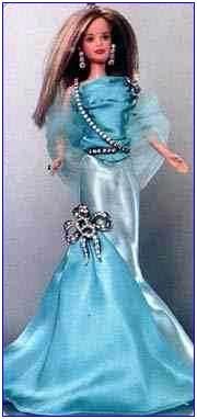 世界上最貴的“芭比”玩具——1999年3月,馬泰爾玩具公司為紀念芭比娃娃推出40週年創作了一個一次性訂製芭比娃娃,價值5萬英鎊。這個娃娃由戴比爾斯鑽石公司協助製作,戴維·莫里斯珠寶商協會揭幕。這個娃娃本身用了將近20克拉的鑽石鑲嵌於18K白金之中。 圍繞著字母“B”是用鑽石做成的一列小火車圖案的弯弓,這個弯弓可以移動並可當胸針戴。頭冠、耳環和裙子圈環都是用18K白金鑲鑽製成,清一色的藍綠色真絲外衣。