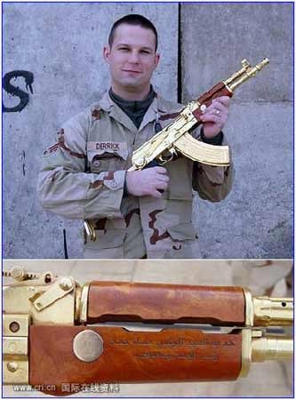 日前,駐伊拉克美軍展示了海珊在執政時期特製的專用武器,一把完全由黄金打造的AK-47步槍,這也是全世界最昂貴的AK-47自動步槍。傳說這把黄金製成的AK-47步槍陪伴海珊一直到其被美軍俘虜前,而這把AK-47也見證了伊拉克歷史的巨大變遷。