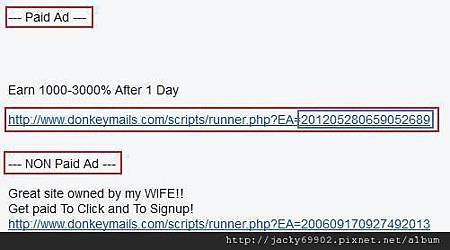 免費註冊完成後,每天均會有3-4封點擊付費的email會寄到信箱,您只要找到內容中的--Paid Ad--最下方那個含有長數字的連結(下面就是--NON Paid Ad--),不管中間是否還有其他連結都不用管,點擊後有驗證碼,然後顯示15秒倒數後就可以得到$0.25美分了。請參考下圖所示。